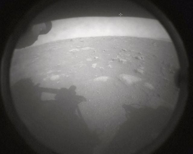 As predicted, down to the minute, NASA’s Perseverance rover touched down in Mars’ Jezero Crater on Thursday at 3:55pm. If there has ever been life on Mars, this crater, an ancient lakebed, is a good place to look for it.