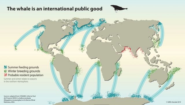 There is, as always, a cost. In this case, it costs a lot less than many other “climate solutions” with few of the tradeoffs that often characterize technological interventions, to say nothing of geoengineering. Each whale, the IMF estimated, is worth about $2 million – for its carbon sequestration powers (this assumes a mechanism like a carbon tax or other formalized cost of carbon emissions), and for the other benefits that whale conservation brings, like fishery improvements and ecotourism.